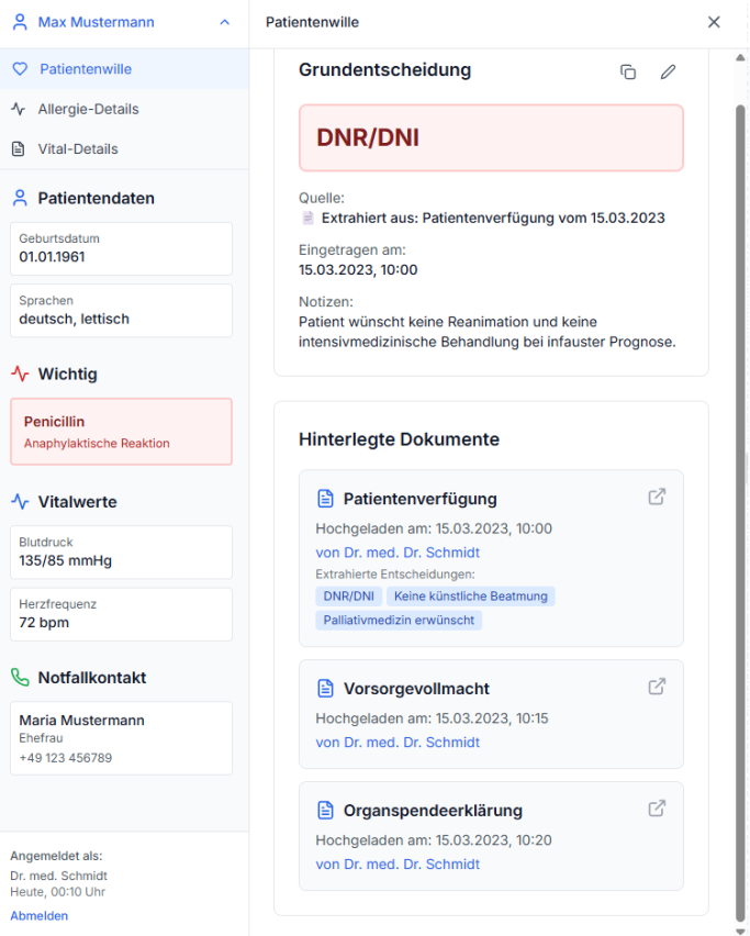 Mittels medizinisch supervidierter Selbstverwaltung des Patienten entsteht dankt maximaler Digitalisierung und KI-Unterstützung eine datenschutzkonforme, verschlüsselte Akte.