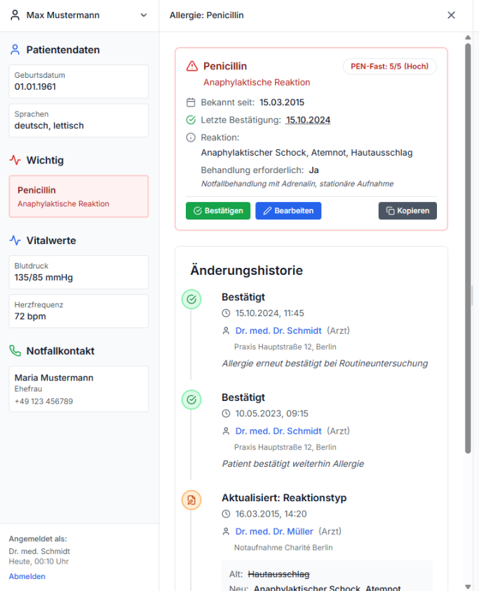 Ziel der Entwicklung ist ein weltweiter Zugang per Webaccess in allen Sprachen, freigegeben situativ durch den Patienten, unabhängig von lokaler IT-Infrastruktur.